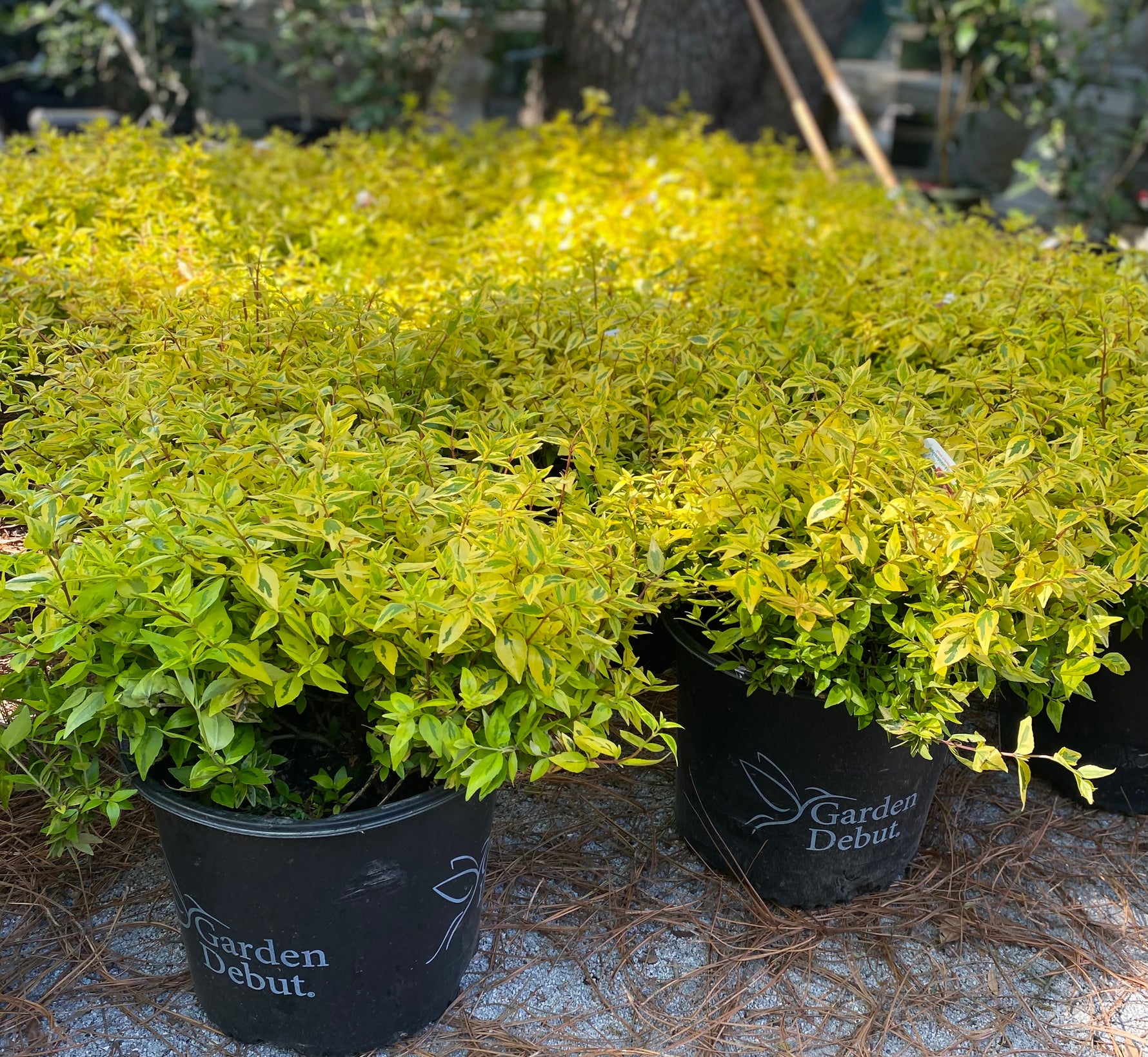 Abelia Kaleidoscope is a compact, evergreen shrub prized for its vibrant, ever-changing foliage. New growth emerges a soft yellow with hints of green, gradually maturing into rich golden tones with variegated creamy edges. In cooler months, the leaves take on striking shades of orange, red, and deep pink - living up to its name with a true 'Kaleidoscope' of color. Tiny, fragrant white blooms appear from late spring through fall, attracting pollinators and adding to its charm. Perfect for borders, foundation plantings, or containers, this tough little shrub brings year-round interest with minimal effort.