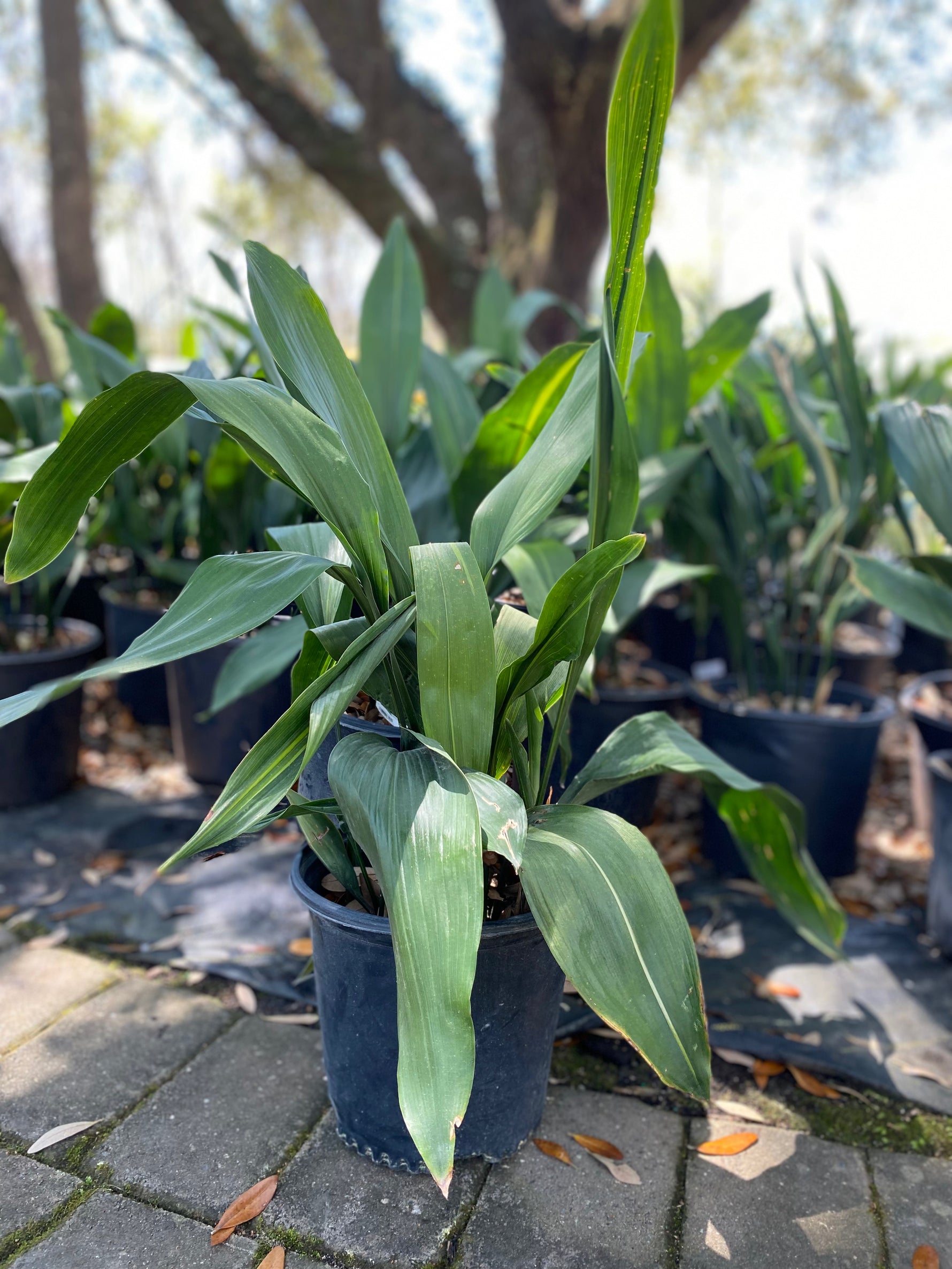 Akebono Cast Iron Plant is a tough, dependable evergreen prized for its striking variegated foliage. Each wide, lance-shaped leaf features splashes of creamy yellow on rich green, adding brightness to low-light garden spaces or indoor rooms. It's ideal for shade gardens, understory plantings, or container displays.