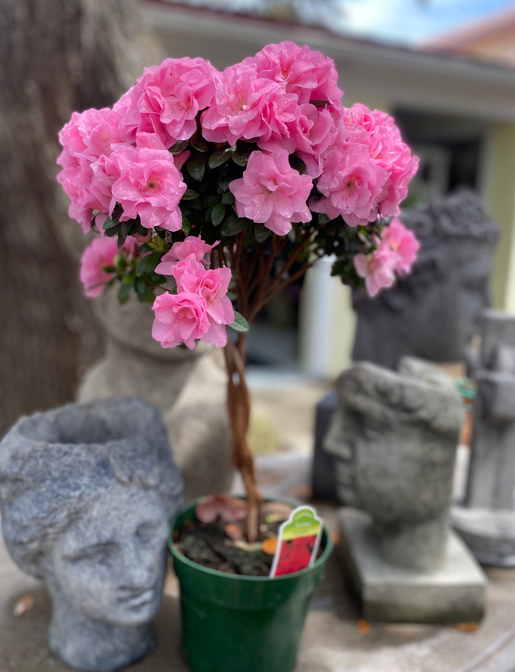 Add a touch of charm and sophistication to your porch, patio, or entryway with the Rozalea Pink Azalea Topiary. This beautiful evergreen shrub is carefully shaped into a tidy, upright topiary and features lush green foliage topped with clusters of vivid pink blooms. Flowering in spring and often again in fall, Rozalea topiaries are compact, easy to care for, and perfect for containers or small garden spaces.