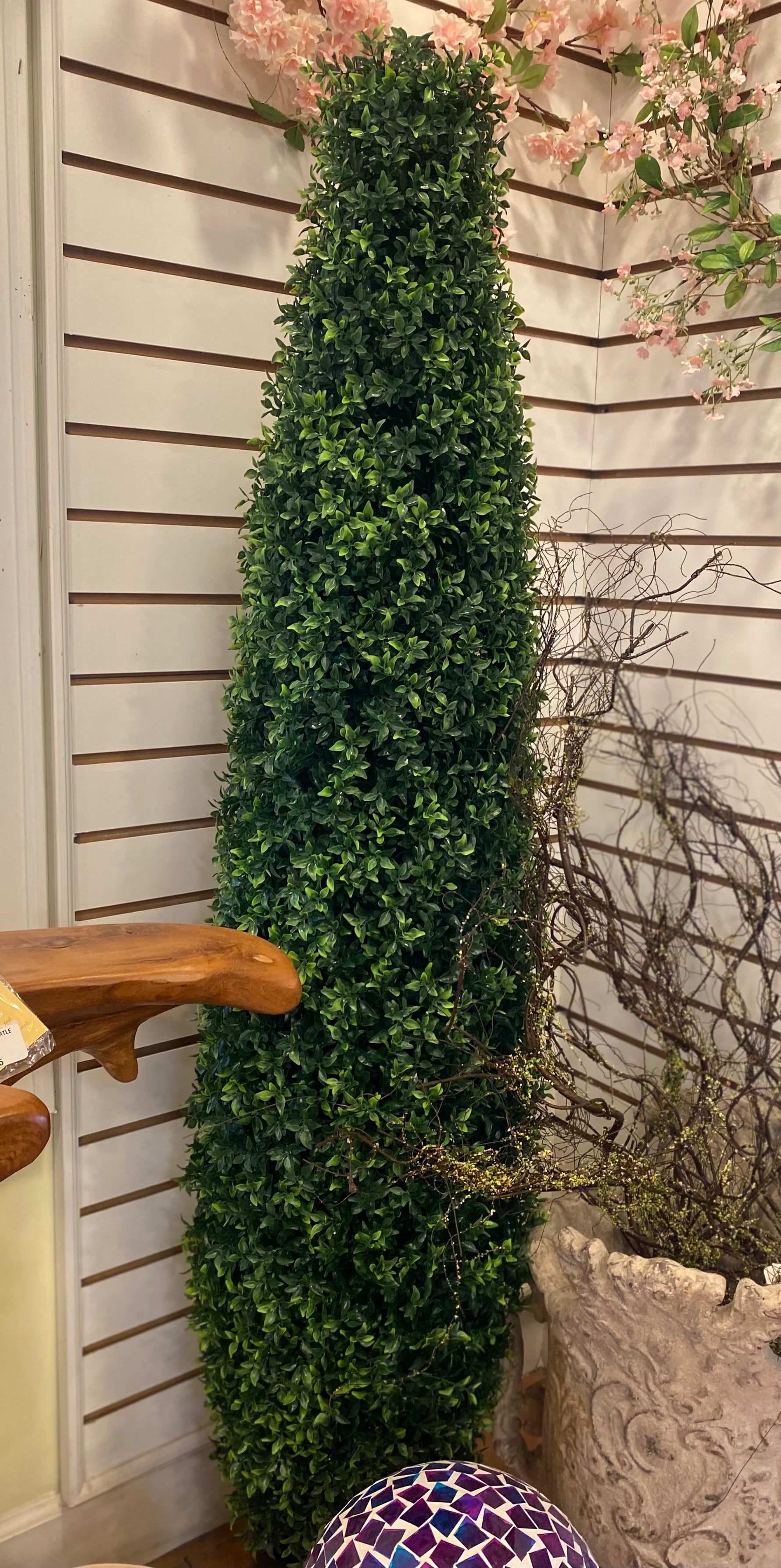 Add timeless elegance and structure to your home, patio, or event space with this striking 5-foot artificial basil leaf topiary. Shaped in a tall, narrow cone, this faux tower mimics the lush look of real greenery while remaining completely maintenance-free.