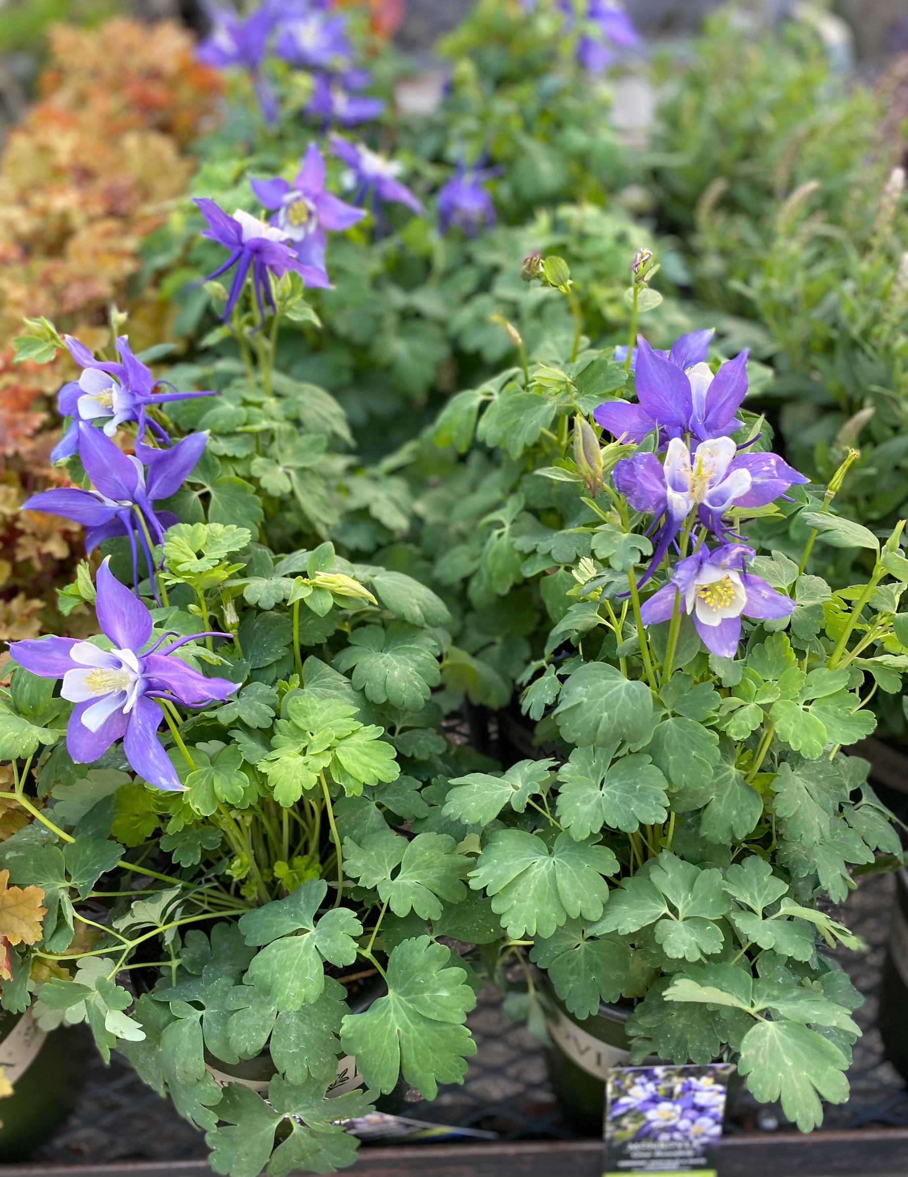 This is a graceful perennial that showcases striking bicolored blooms with rich, deep. blue outer petals and crisp white inner petals. Its delicate, nodding flowers rise above lacy green foliage in late spring to early summer, adding a touch of elegance and woodland charm to garden beds and borders.
