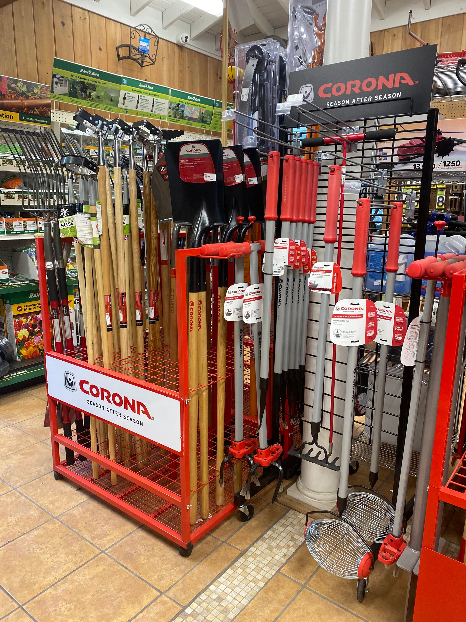 Discover our complete selection of premium-quality Corona gardening tools, known for their strength, comfort, and reliability. From heavy-duty shovels and rakes to cultivators, pruners, and long-handled tools, this display features essential gear for landscapers and home gardeners alike. With ergonomically designed handles and durable steel construction, Corona tools are built to last - season after season.