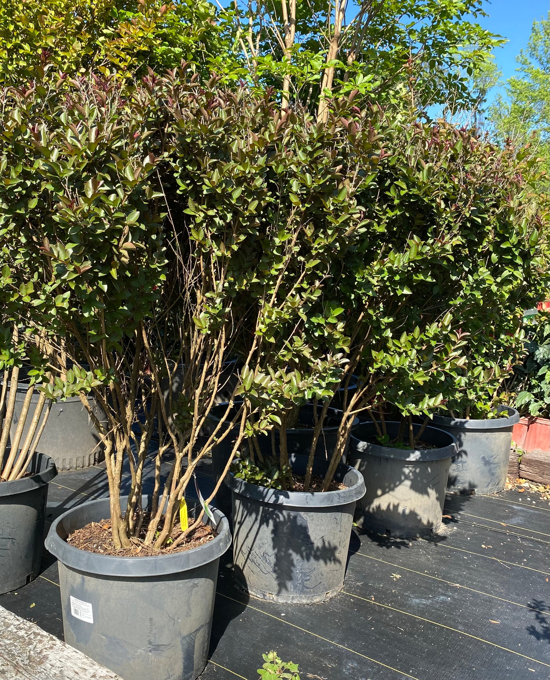 The Double Feature Crapemyrtle is compact, reblooming variety known for its vibrant cherry-red flowers that bloom not once - but twice in a season. With a naturally rounded shape and glossy, deep green foliage, it offers a tidy, low-maintenance option for adding bold color to landscapes and gardens. In fall, the leaves turn rich burgundy, adding seasonal beauty even after blooms fade.