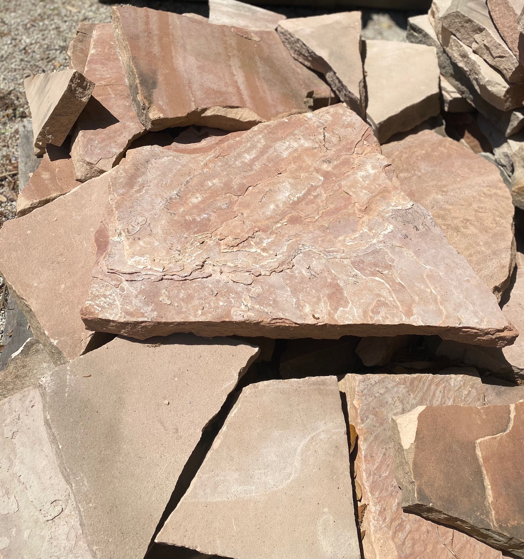 Add warmth and natural charm to your landscape with our Dusty Rose Irregular flagstone. Featuring soft rose, blush, and sandstone tones with occasional cream or rust veining, this stone blends beautifully into a variety of outdoor designs. Its irregular shapes give it a rustic, organic feel - perfect for walkways, patios, garden paths, and natural step stones.