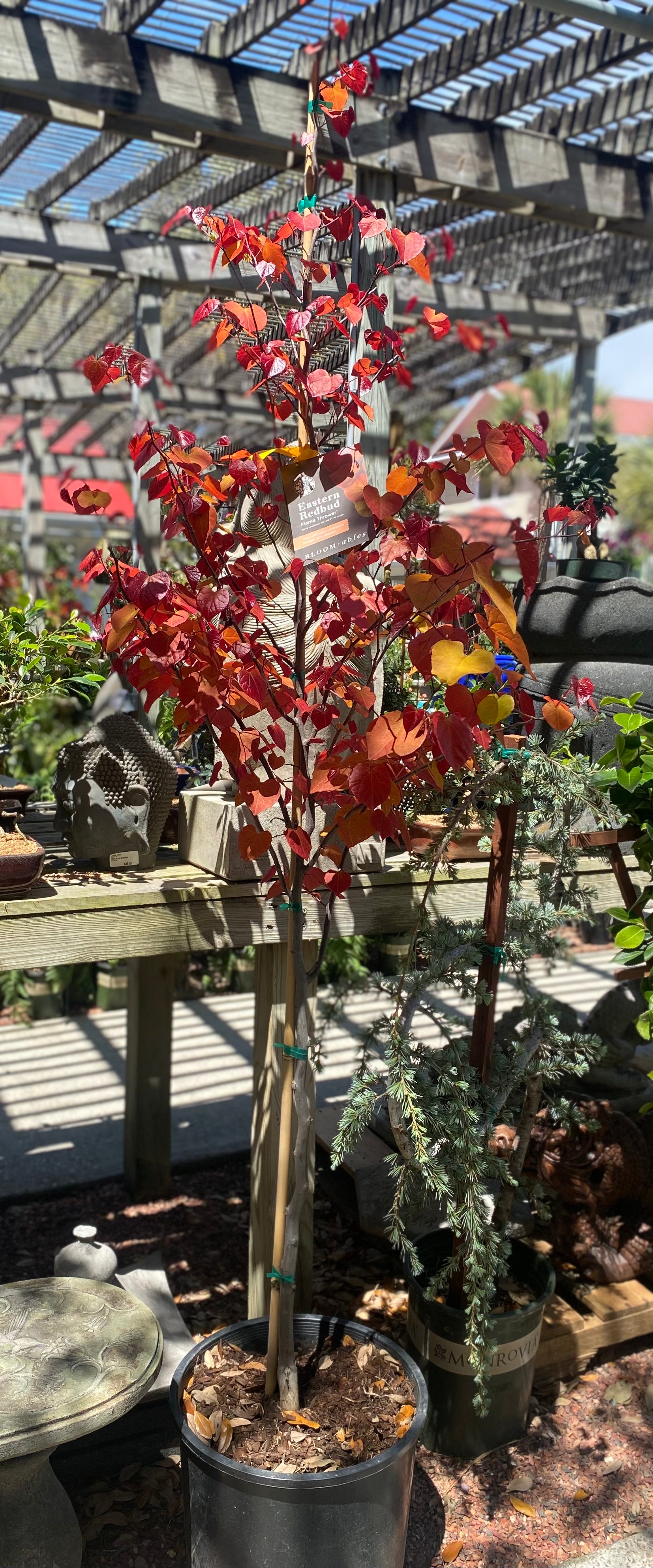Add a burst of color to your landscape with.the 'Flame Thrower' Redbud, a breathtaking variety of Cercis Canadensis known for its multi-colored foliage and spring blooms. New leaves emerge vibrant burgundy, transitioning to bright yellows, oranges, and greens, creating a layered, flame-like effect that lasts all season. In early spring, it produces rosy-purple flowers on bare branches before the foliage appears.