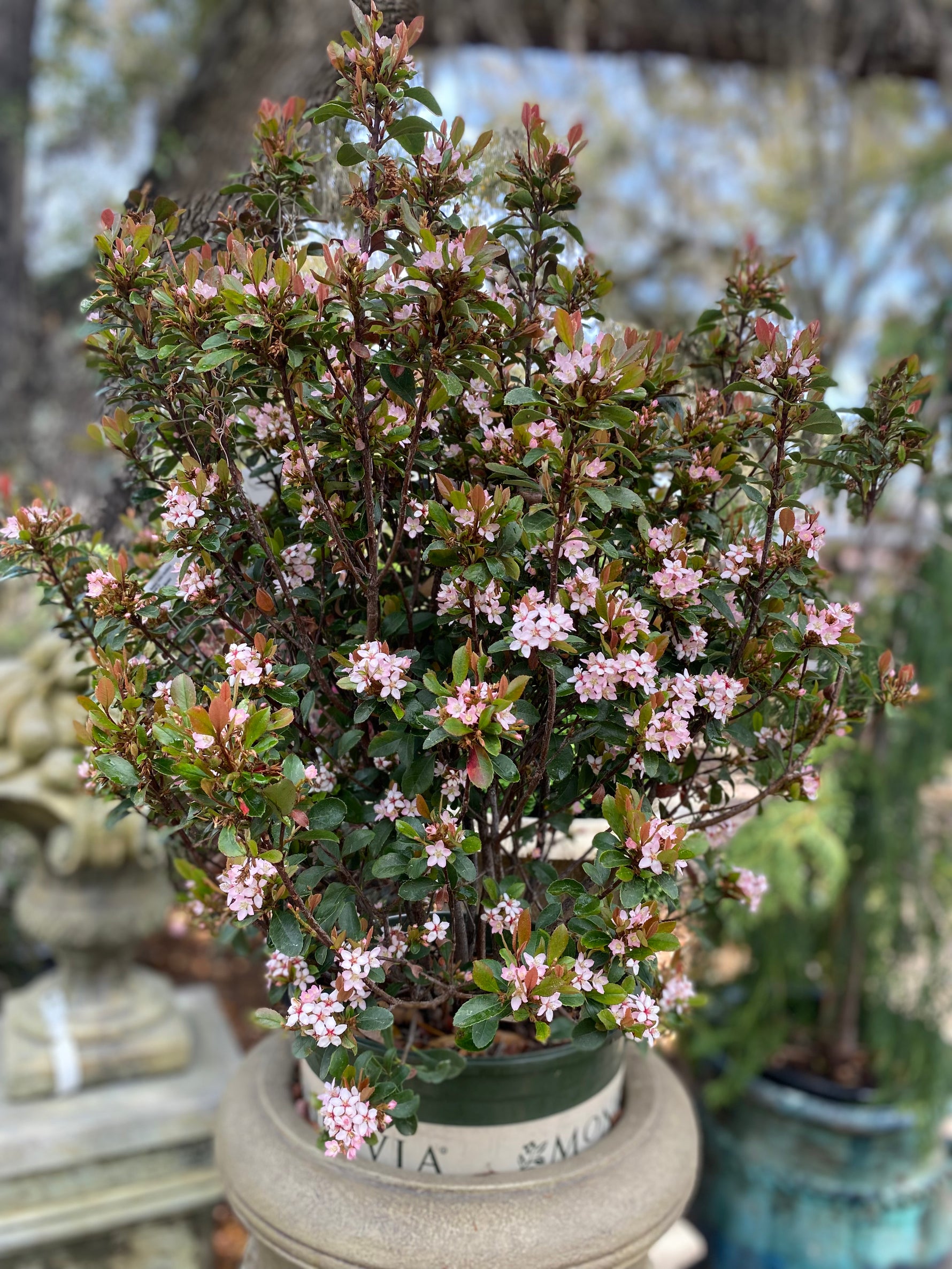 Eleanor Indian Hawthorne is a compact evergreen shrub prized for its soft pink, star shaped blooms in early spring and deep green, glossy foliage year round. It's one of the most popular and reliable Indian Hawthornes, offering long-lasting color and a tidy, low growing shape.