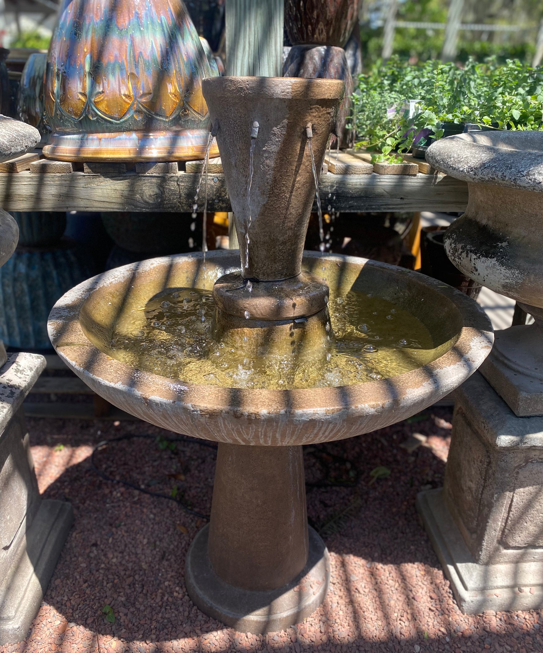 The Falling Waters Fountain features a tall, sculpted centerpiece from which multiple streams of water gently cascade into a wide basin below. Crafted from cast stone with a natural finish, this elegant fountain brings a soothing soundscape and contemporary silhouette to any garden or patio. Its clean lines and tranquil water flow create a modern focal point perfect for both residential landscapes and commercial outdoor settings.