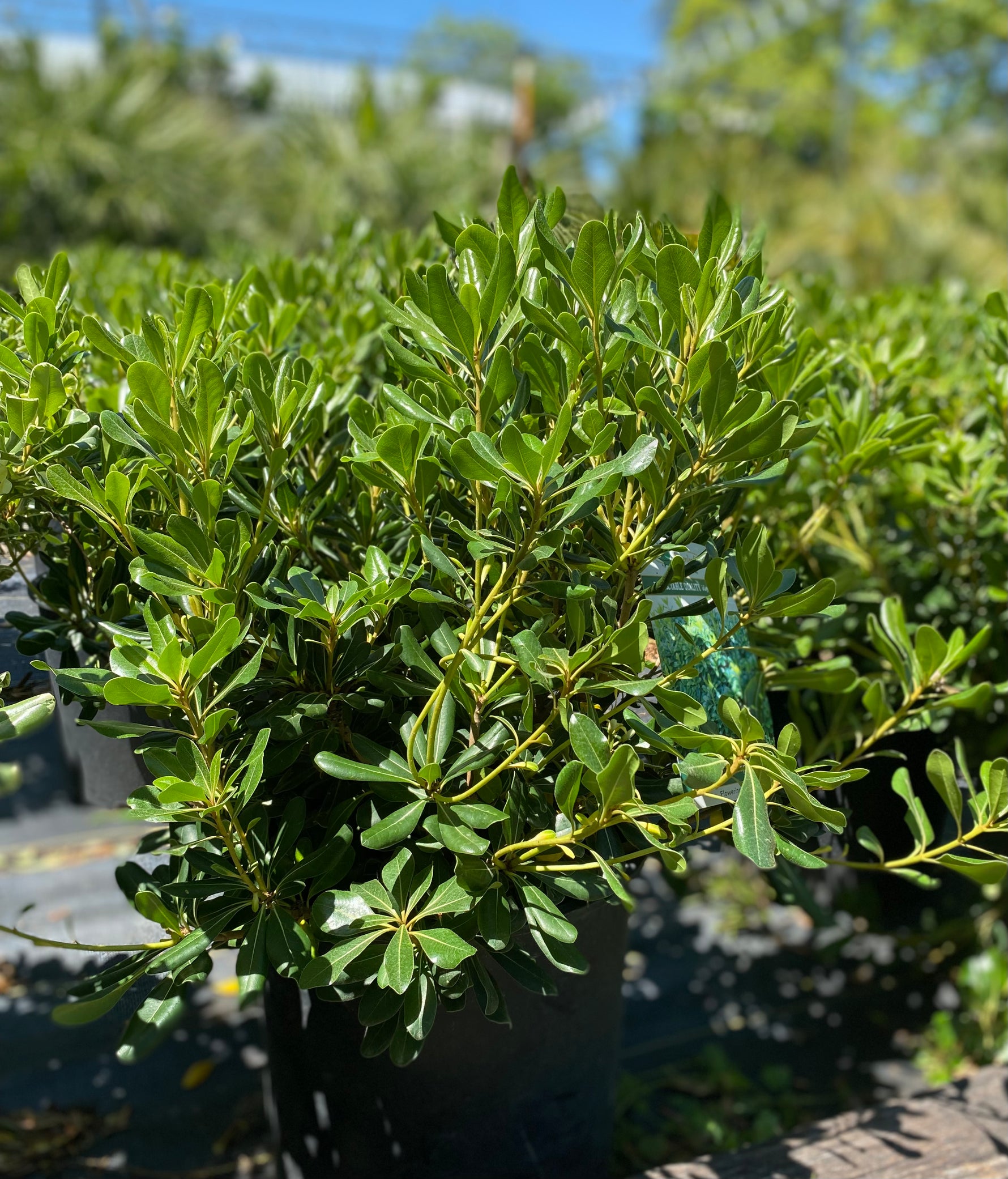 Green Pittosporum is a classic evergreen shrub valued for its lustrous, deep green foliage and sweetly fragrant white flowers that bloom in spring. With a naturally rounded, dense habit, this versatile shrub is ideal for hedges, foundation plantings, privacy screens, and topiary.