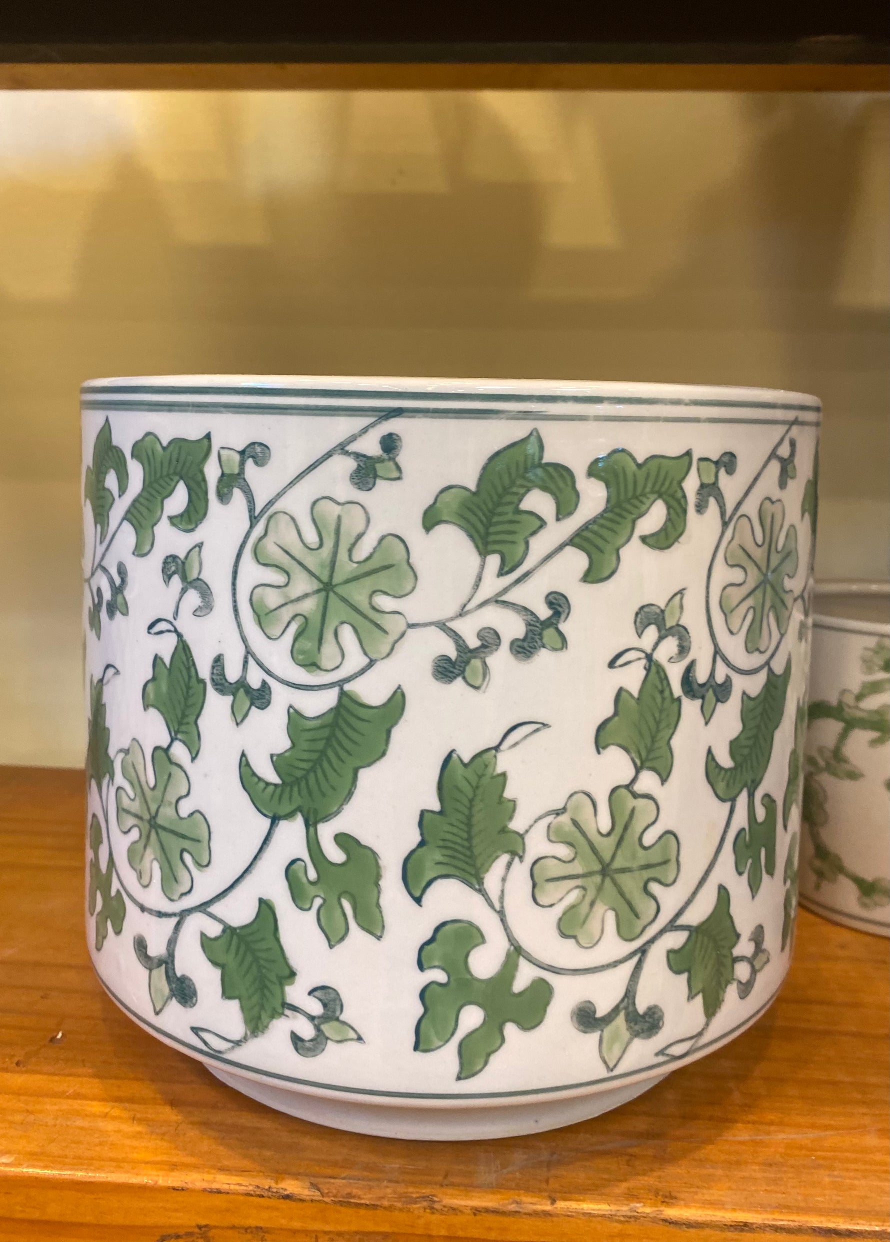 Elegant and timeless, this ceramic planter features a classic green vine pattern on a crisp white background. Perfect for adding a fresh, botanical touch to your indoor spaces, it's ideal for showcasing your favorite houseplants or decorative arrangements. Durable, stylish, and easy to pair with a variety of decor styles.