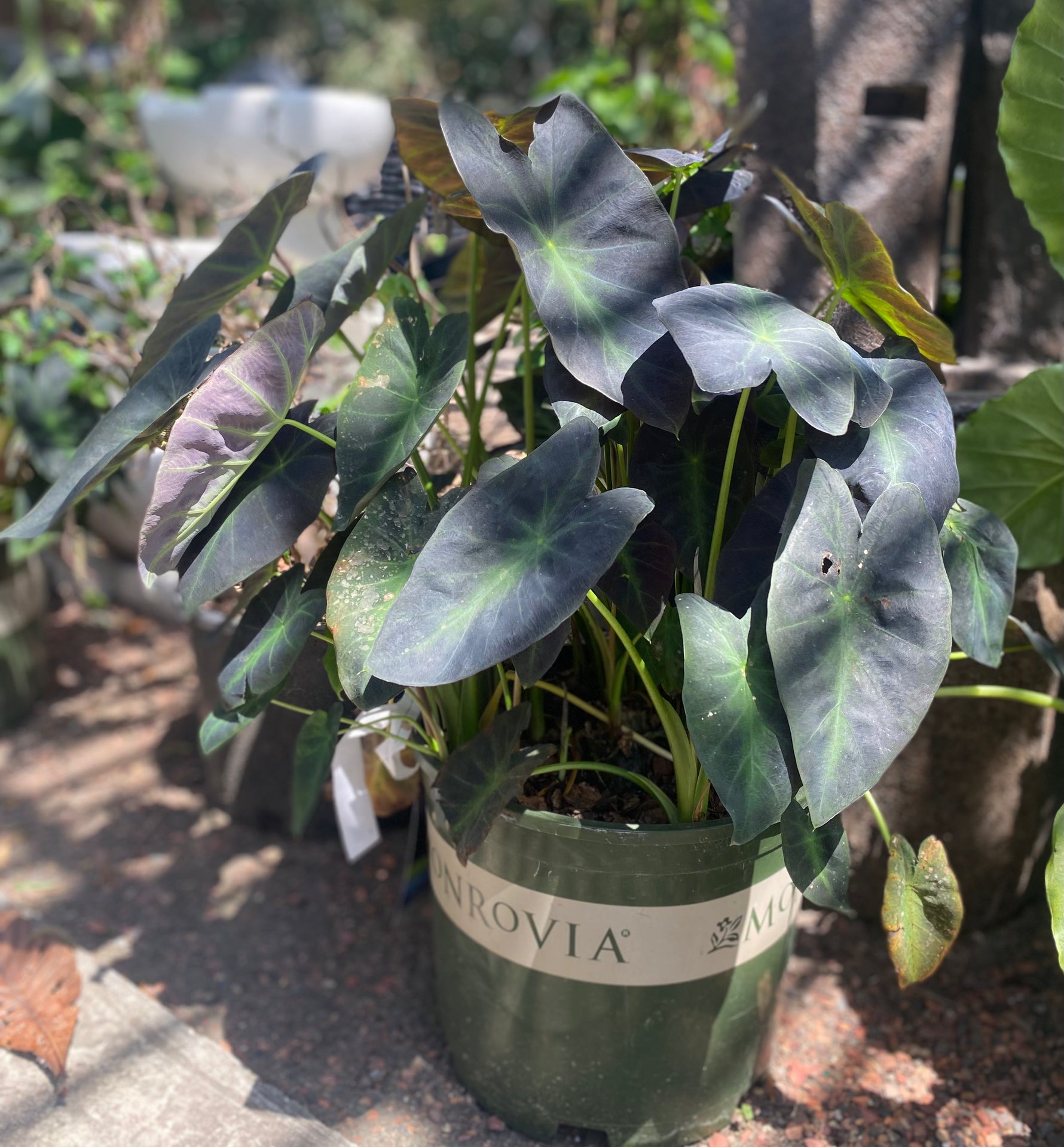 Imperial Taro is a stunning tropical plant known for its deep purple to near-black foliage that adds dramatic contrast to garden beds, containers, and water features. With large, heart-shaped leaves and a bold, upright habit, it makes an impressive statement in both sun and shade gardens. It's especially eye-catching in mixed tropical plantings or as a standalone feature.