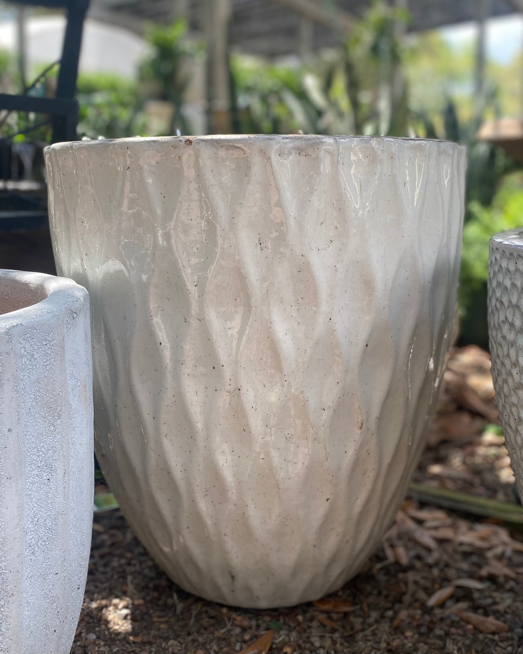 Elegant and timeless, the Ivory Cascade Planter features a soft ivory glaze and flowing vertical texture that mimics cascading water. Its sculpted surface adds visual depth and a touch of movement, making it a stunning accent for any plant. Perfect for both contemporary and classic garden styles, this durable ceramic planter is as functional as it is beautiful - ideal for indoor or outdoor use.