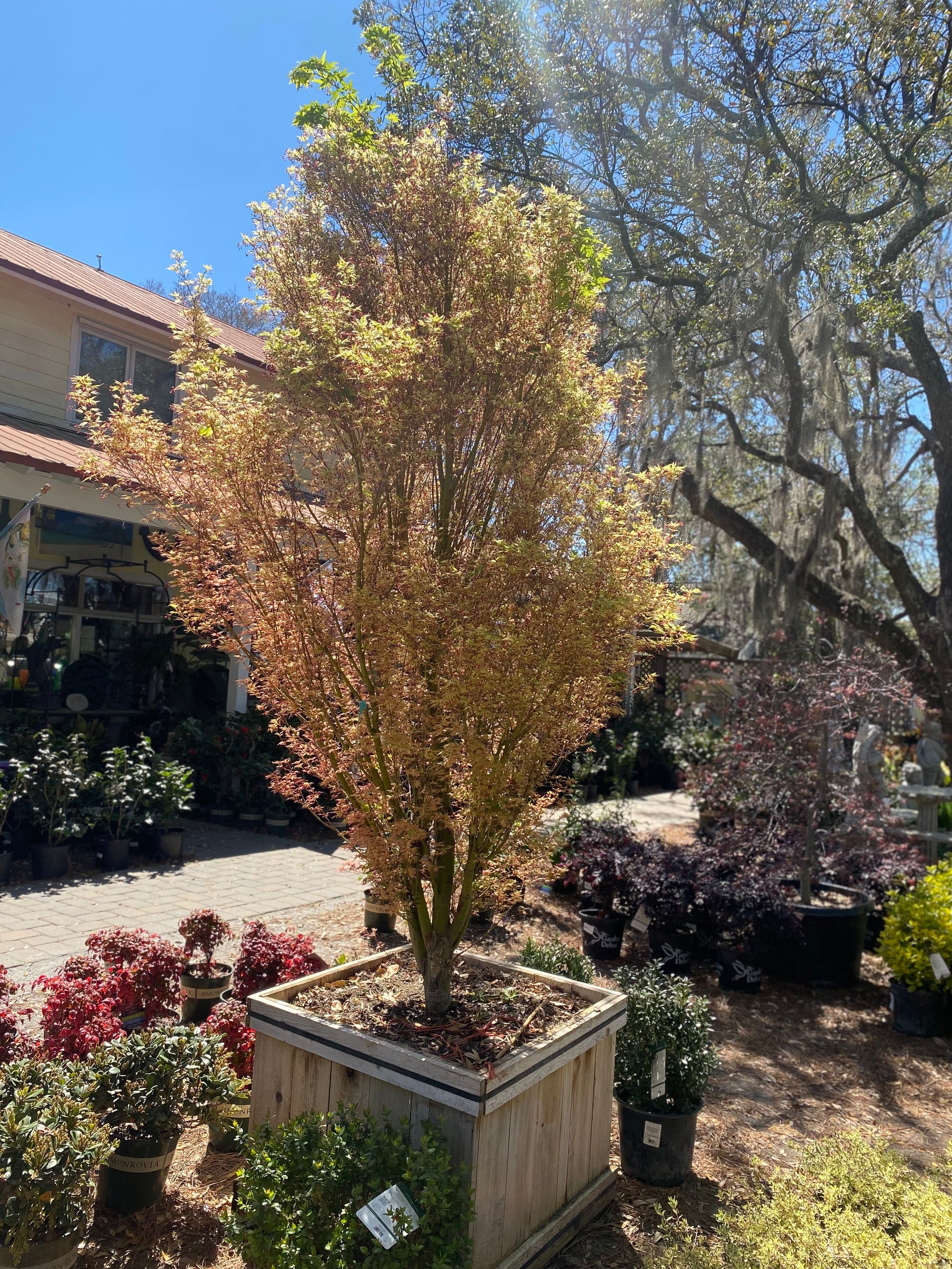In fall, the leaves turn a soft reddish-pink, adding another layer of color and seasonal interest. With a graceful, upright habit and slow growth, it's an ideal choice for accent plantings, courtyard, or any spot that calls for subtle, sophisticated charm.