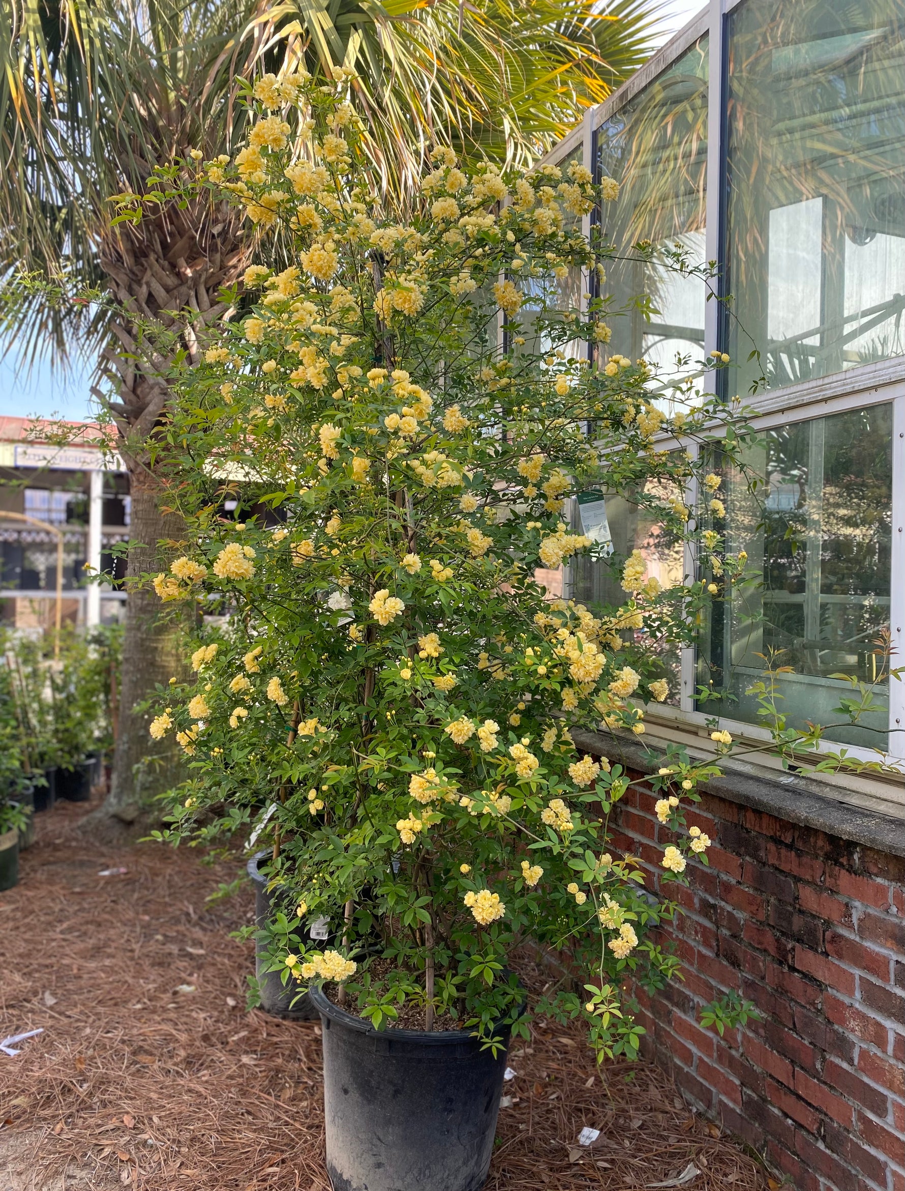 Unlike many traditional roses, Lady Banks is nearly thornless and incredibly low maintenance. It thrives in full sun, resists most pests and diseases, and returns year after year with little effort. Once established, it can cover large spaces with graceful, arching branches and long-lasting color.