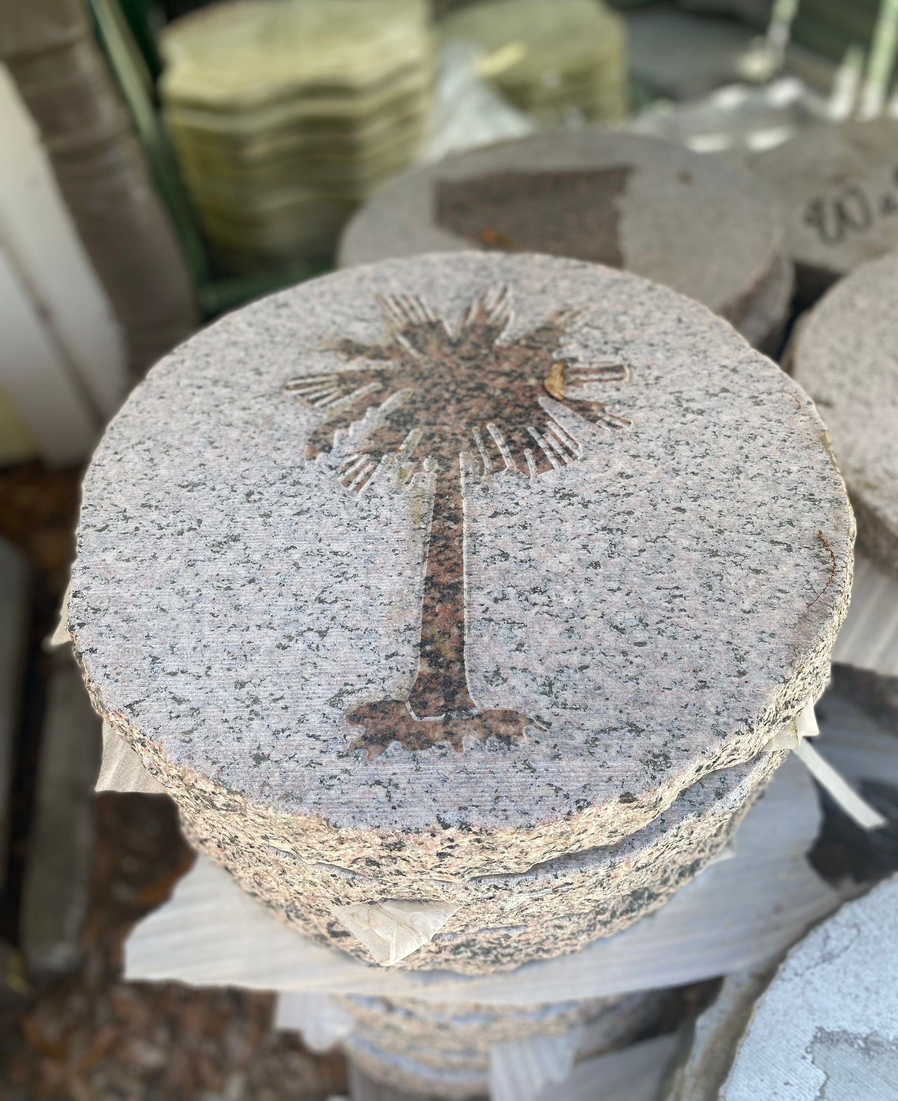 Crafted from durable granite with a polished South Carolina palmetto design, these round stepping stones bring state pride and timeless coastal charm to any garden or pathway. Perfect for creating elegant walkways or accenting outdoor spaces with local character and lasting beauty.