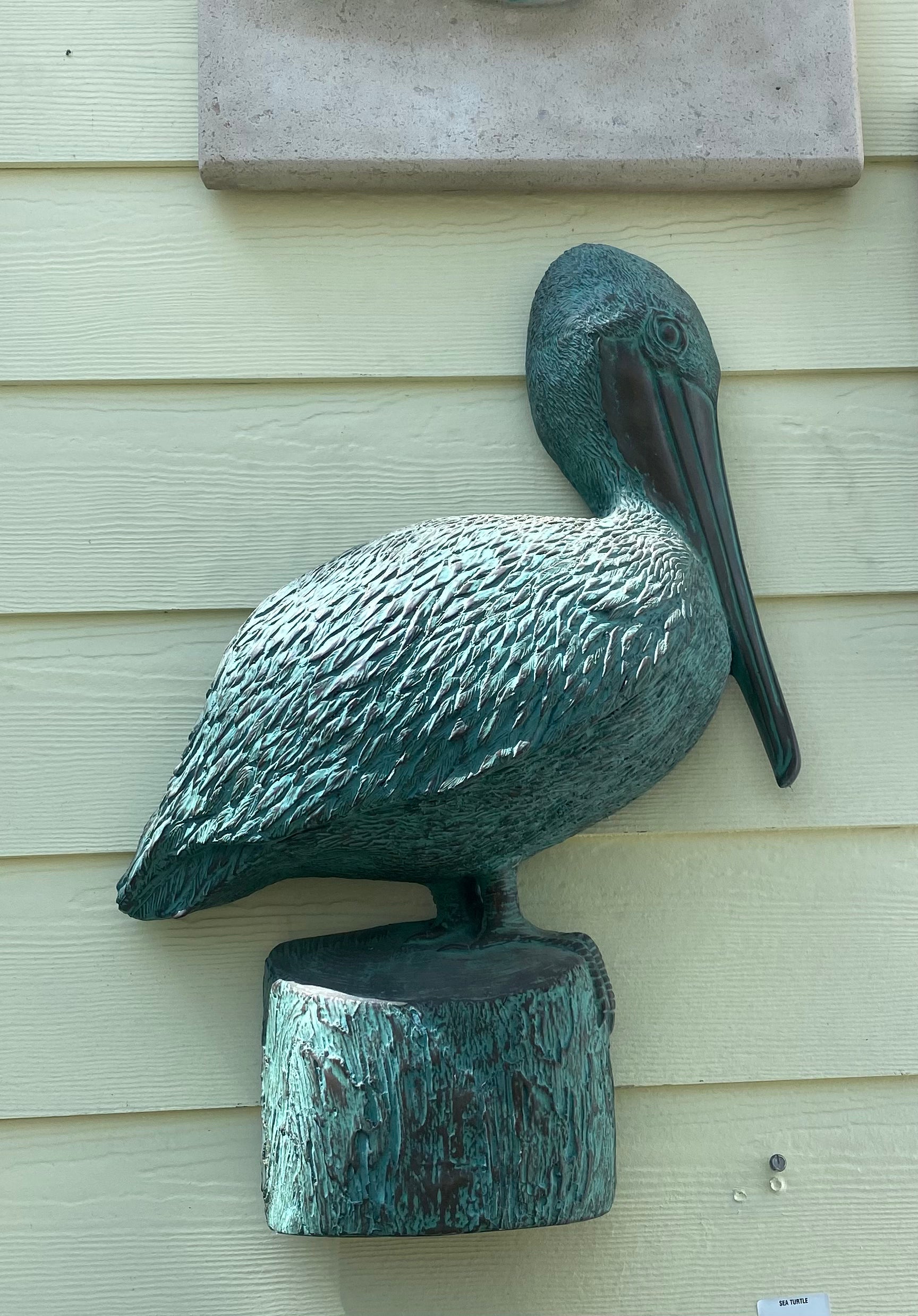 Capture the relaxed spirit of the coast with this stunning pelican wall sculpture. Crafted with lifelike texture and finished in a rich, weathered patina, this beautiful piece brings rustic seaside charm to any outdoor wall, entryway, or sunroom. Perched atop a dock-style post, the design evokes peaceful waterfront scenes, making it a perfect accent for beach homes, patios, and nautical-inspired spaces.