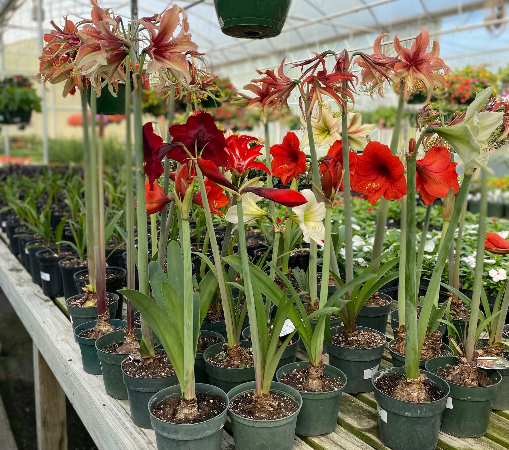 Bursting with bold color and dramatic height, these potted amaryllis offer a stunning floral display with minimal effort. Each bulb produces large, trumpet-shaded blooms in shades of deep red, soft white, and variegated blends - perfect for adding elegance to sunrooms, patios, or gifting occasions. With tall, sturdy stems and glossy green leaves, they bring both structure and beauty to any space.