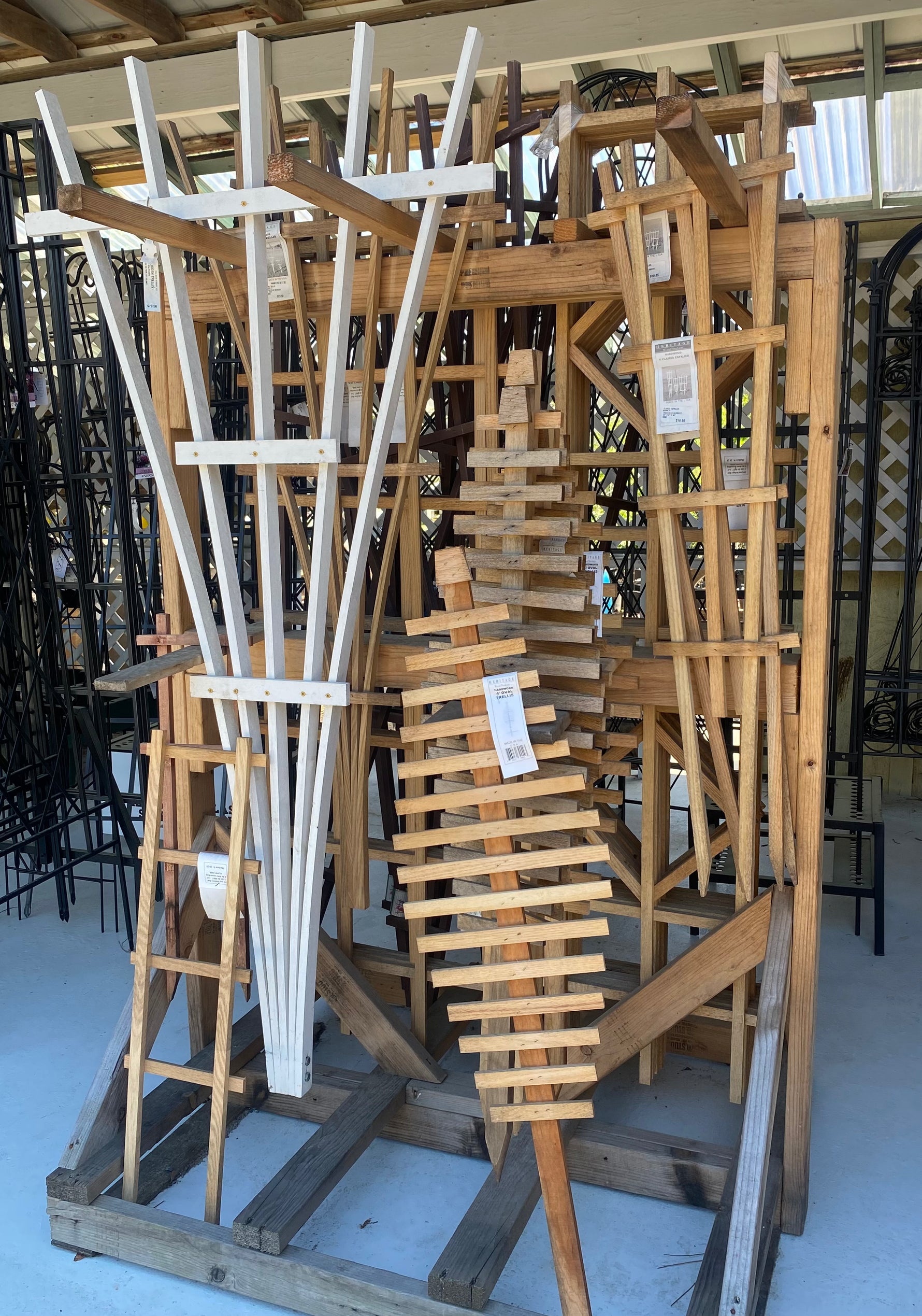 A versatile assortment of handcrafted wooden trellises in various shapes and sizes, perfect for supporting climbing plants like roses, clematis, or jasmine. Made from natural, untreated wood for a charming, rustic look that blends beautifully into garden beds, patios, or entryways. These trellises add height, structure, and classic cottage garden appeal to any outdoor space.