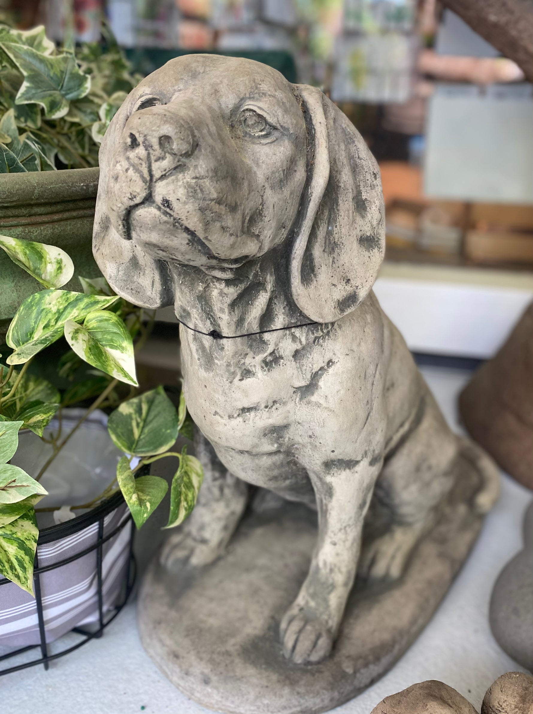 Meet 'Scout', a noble and lifelike cast stone dog statue that brings timeless charm to any garden or entryway. With its expressive face and classic seated pose, this handcrafted piece captures the loyal essence of man's best friend. Perfect for dog lovers or as a memorial tribute, Scout blends naturally with traditional or rustic outdoor decor. Durable and weather-resistant, it's a long-lasting statement of love and loyalty.