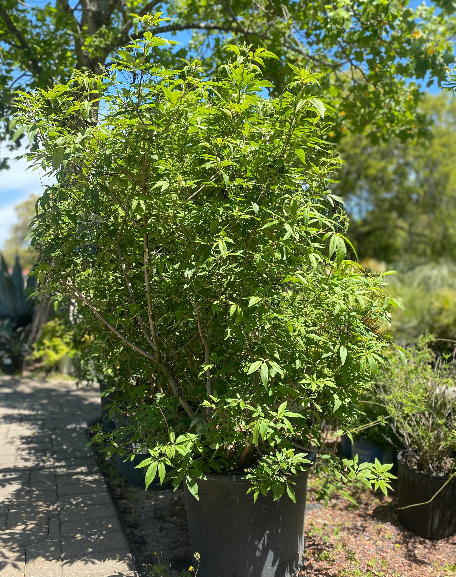 The Shoal Creek Chaste Tree is a fast-growing, multi-stemmed deciduous shrub or small tree prized for its aromatic, gray-green foliage and long spikes of vibrant lavender-blue flowers that bloom from summer into early fall. Loved by pollinators and gardeners alike, this sun-loving plant adds bold color, fragrance, and texture to warm-climate landscapes.