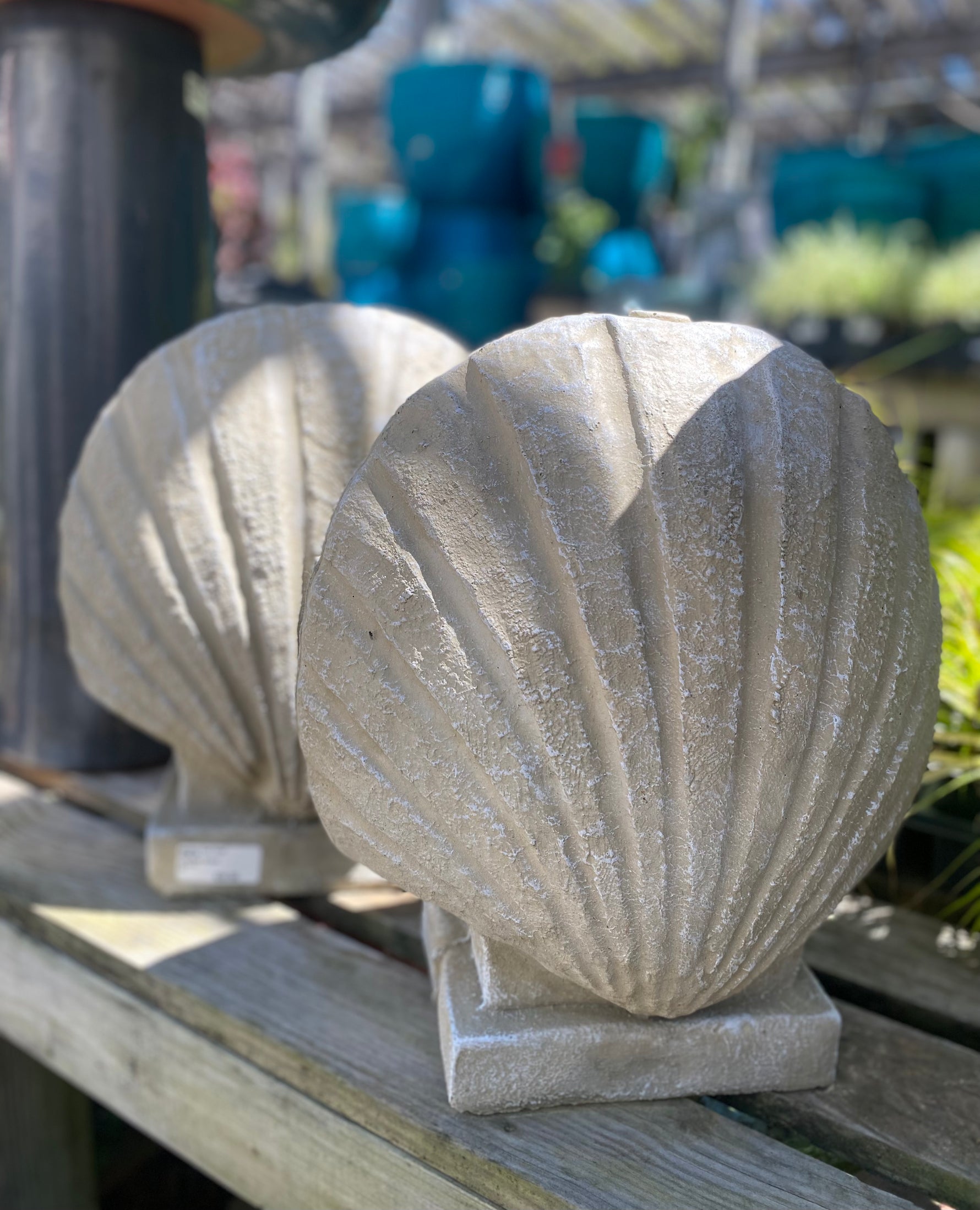 Celebrate coastal charm with this elegant cast stone shell sculpture, perfect for beach-themed gardens, patios, entryways. Its detailed ridging and weathered texture evoke the natural beauty of the sea while adding a touch of refined, nautical decor. Display it solo or as a symmetrical pair for timeless seaside flair.