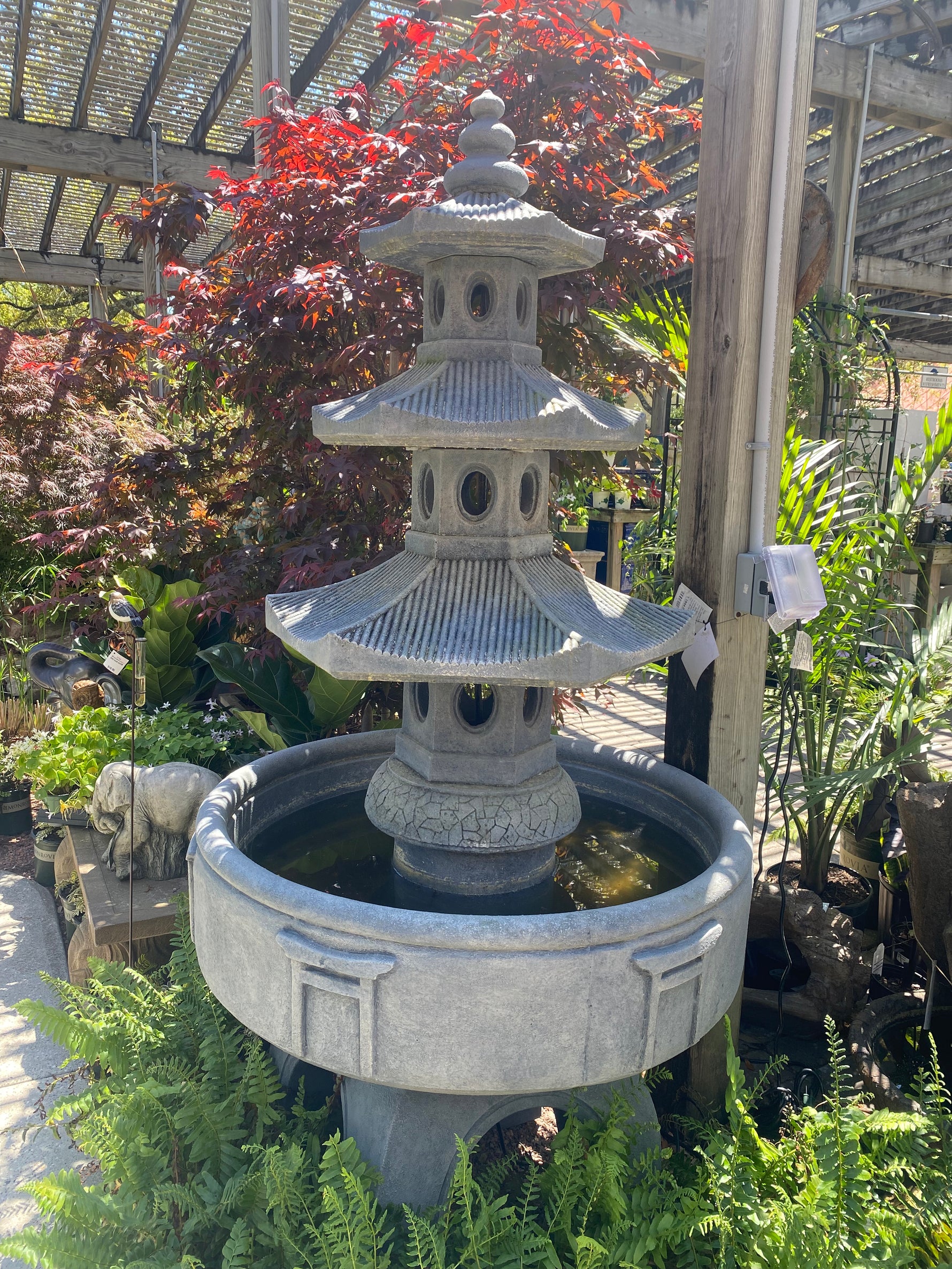 This elegant three tiered pagoda fountain captures the essence of traditional Asian garden design. With its intricate rooflines, circular window accents, and a wide, serene basin, it creates a tranquil focal point for any outdoor space. Crafted from durable cast stone, the structure combines striking architectural detail with the soothing sound of flowing water. Ideal for gardens, courtyards, or as a statement piece in shaded landscape settings.