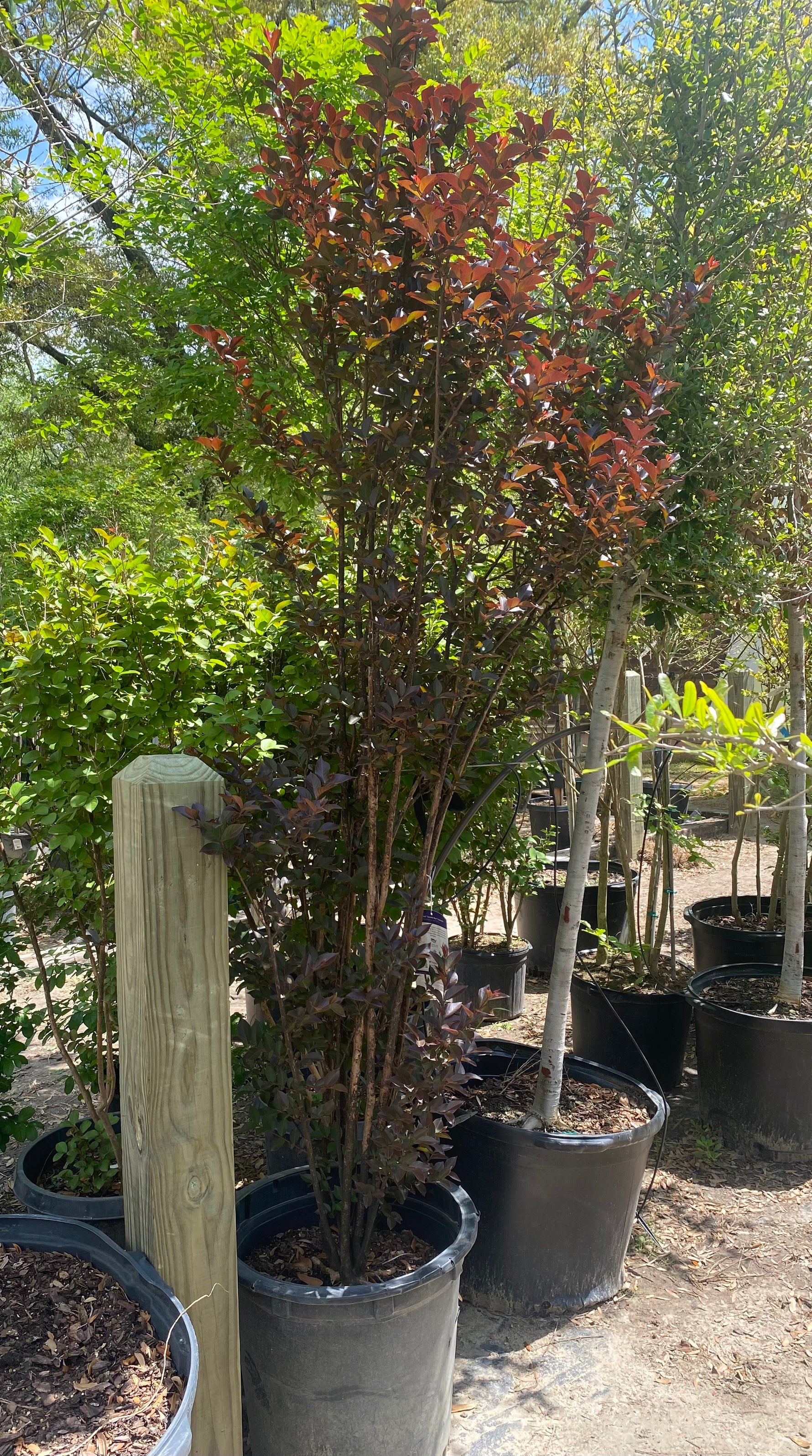 This crape myrtle reaches 10-12 feet tall and 6-8 feet wide, forming and upright, vase-shaped silhouette perfect for foundation plantings, borders, or as a colorful focal point. It thrives in full sun, tolerates heat and humidity, and is resistant to powdery mildew and leaf spot. Ideal for Southern landscapes, it's a low-maintenance, high-performance choice for bold color.