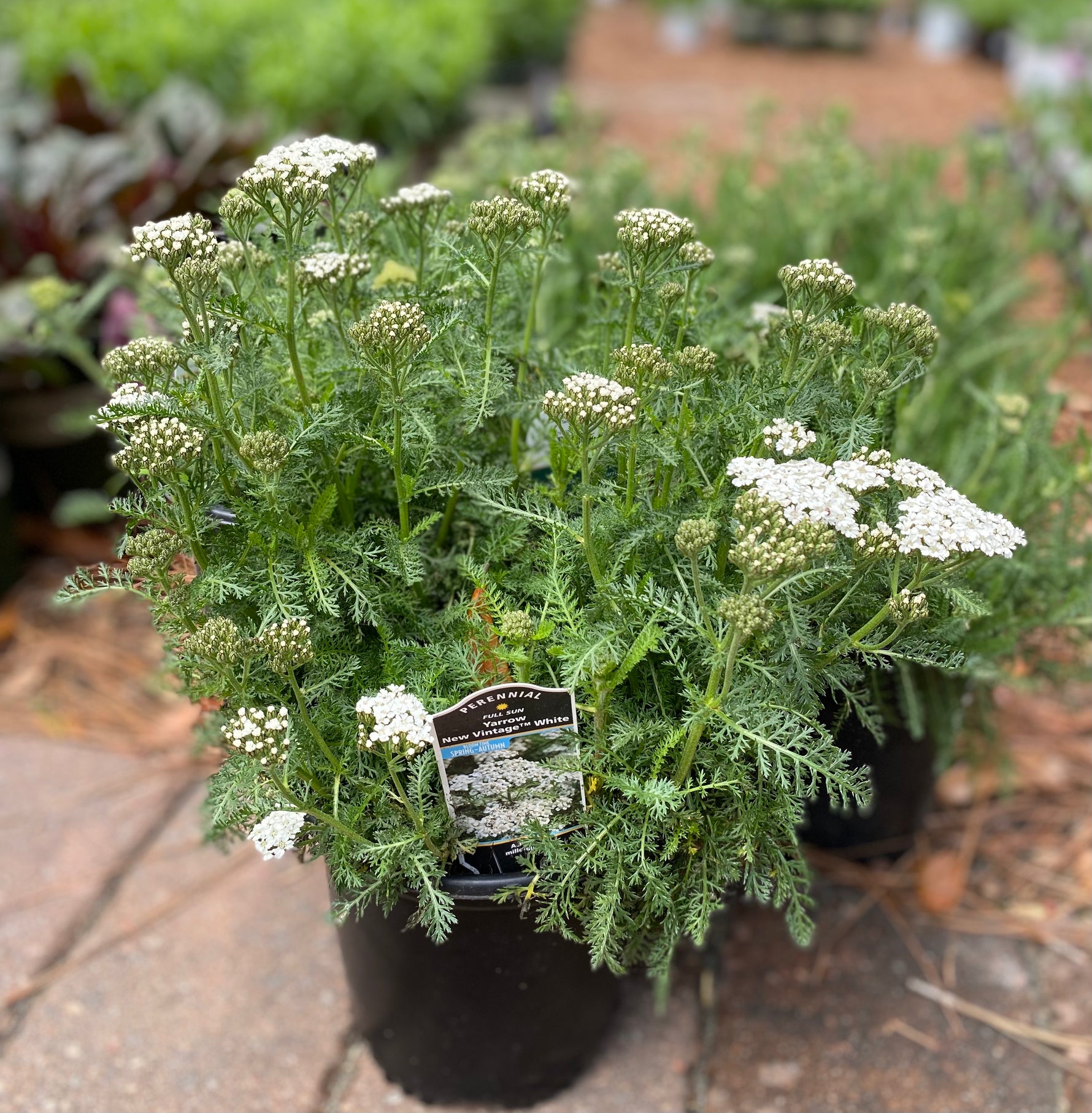 Brighten your garden with the clean , crisp blooms of this White Yarrow. This compact, clump-forming perennial produces clusters of pure white flowers atop sturdy, upright stems that resist flopping. Fern-like, aromatic foliage adds fine texture to beds, borders, and pollinator gardens.
