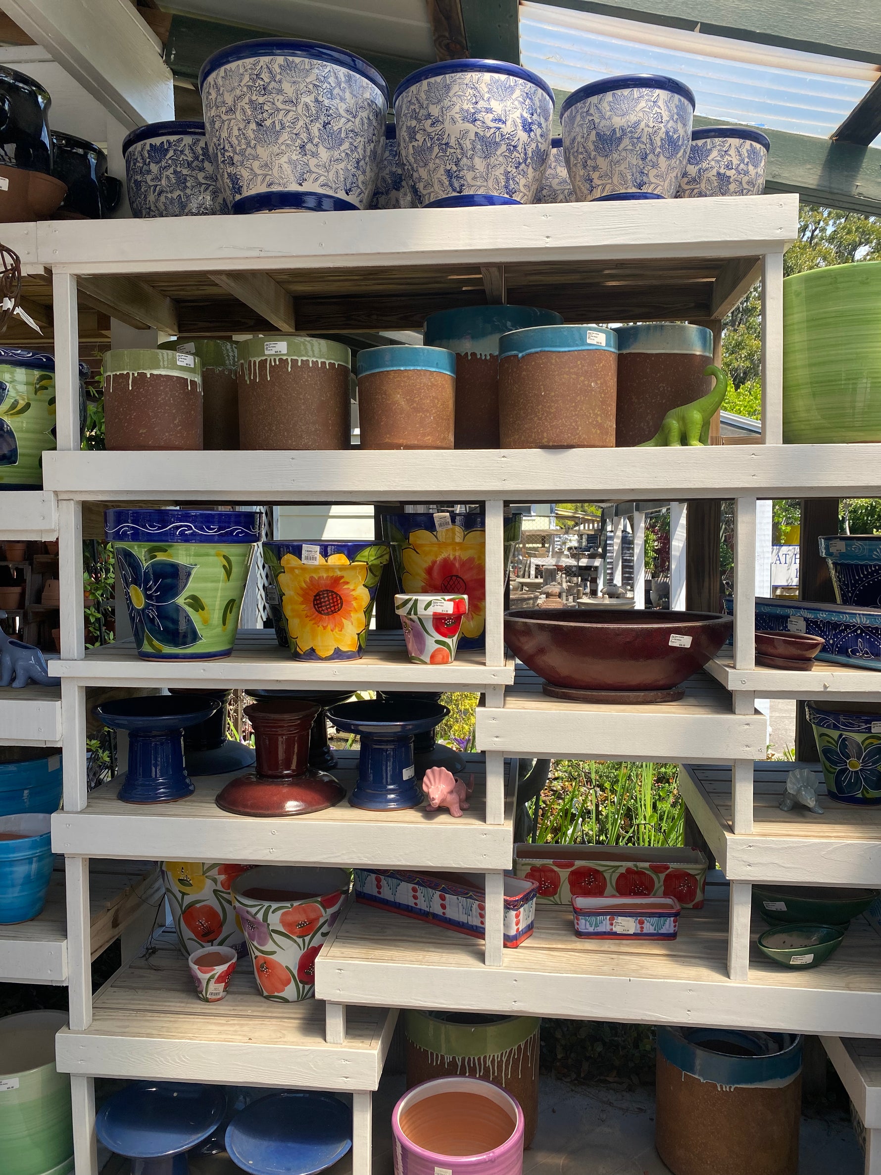 Discover our vibrant collection of decorative ceramic pots and planters - perfect for adding personality to porches, patios, and garden beds. From hand-painted floral designs to classic solid glazes, this assortment features a range of colors, styles, and sizes to suit every plant and decor style. Ideal for indoor and outdoor use, many options include drainage holes for healthy root growth. Whether you're potting up herbs, succulents, or seasonal blooms, you'll find the perfect pot in this eye-catching display.