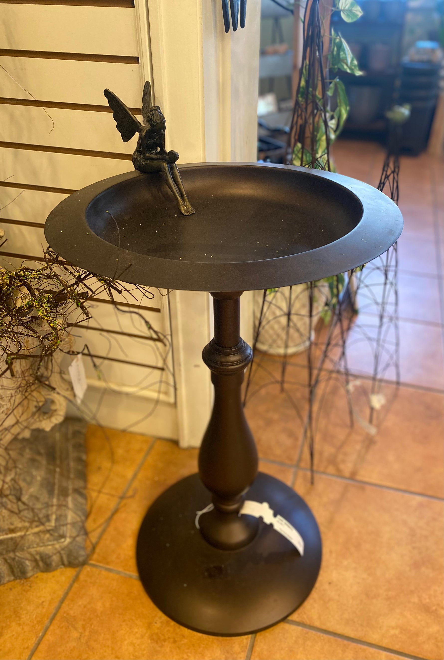 Add whimsical charm to your garden with this enchanting bronze-finish fairy birdbath. Featuring a graceful fairy figure perched on the edge of a wide, shallow basin, this piece doubles as functional art for bird lovers and fantasy enthusiasts alike.