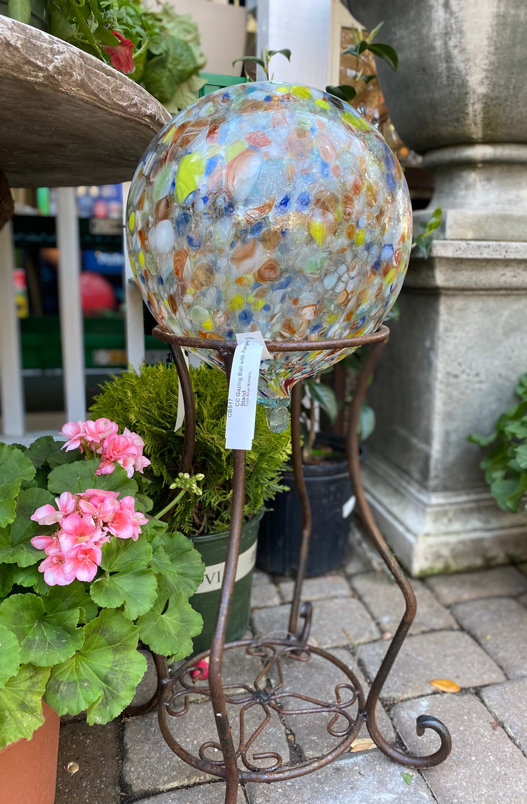 Colorful Mosaic Glass Gazing Ball with Iron Stand